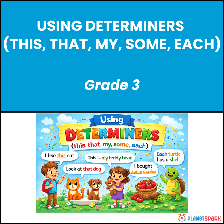 Grade 3 English Worksheet on Using Determiners